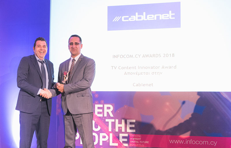 Το Συνέδριο InfoCom Cyprus, για ακόμα μια φορά, έδωσε το στίγμα των εξελίξεων στις τεχνολογίες επικοινωνιών και πληροφορικής, τονίζοντας τις προοπτικές που προκύπτουν από την ταχύτατη ανάπτυξη των νέων δικτυακών υποδομών και τον ψηφιακό μετασχηματισμό. Ιδιαίτερη στιγμή για την εταιρεία μας ήταν η βράβευση μας, με το βραβείο TV Content Innovator, το οποίο παρέλαβε ο CCO της Cablenet κ. Περικλής Θεοδωρίδης.